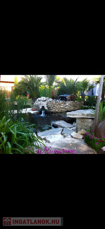 - Igényes rendben tartott kert melyben található: épített tégla kemence, 2 darab sziklakertes halastó, fűthető medence, pálmaház.